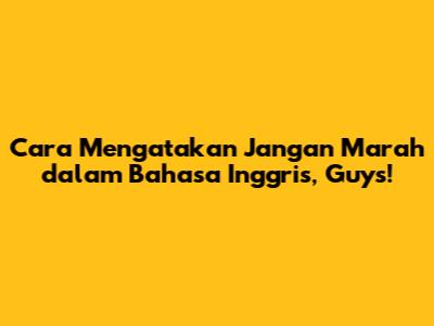 Cara Mengatakan 'Jangan Marah' Dalam Bahasa Inggris