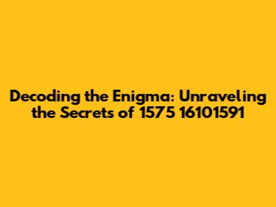 Decoding The Enigma: Unraveling The Secrets Of 1575 16101591