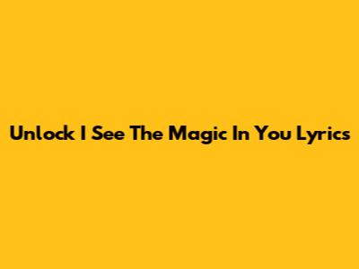 Unlock "I See The Magic In You" Lyrics
