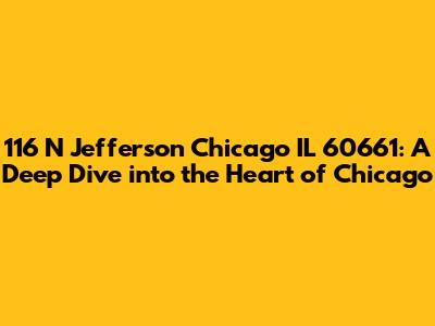 Hey there, folks! Ever wondered about the buzz around 116 N Jefferson Chicago IL 60661? Well, buckle up, because we're about to take a deep dive into this address, exploring its significance, what's around, and why it's a spot worth knowing about. Let's get started, shall we? This address is nestled right in the vibrant heart of Chicago, a city known for its stunning architecture, diverse culture, and bustling business scene. The 'IL 60661' part is the zip code, and it's super important because it helps pinpoint the exact location. Think of it as the secret code that unlocks the neighborhood's treasures. Being located at 116 N Jefferson Chicago IL 60661 means you're smack-dab in the middle of all the action. You're close to iconic landmarks, world-class dining, and a thriving community. It's not just an address; it's a gateway to experiencing the best of what Chicago has to offer. The building itself and the area around it contribute to the city's unique blend of history, innovation, and everyday life. When we explore this address, we're not just looking at a place; we're exploring a part of Chicago's soul.