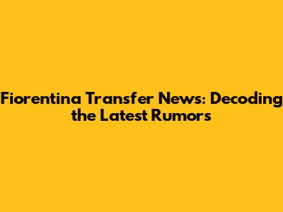 Fiorentina Transfer News: Latest Rumors & Updates