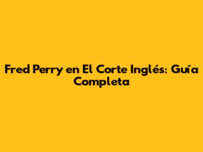 Fred Perry En El Corte Inglés: Guía Completa