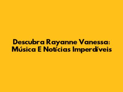 Descubra Rayanne Vanessa: Música E Notícias Imperdíveis