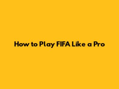 How To Play FIFA Like A Pro
