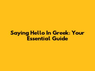 Saying Hello In Greek: Your Essential Guide
