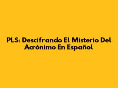 PLS: Descifrando El Misterio Del Acrónimo En Español