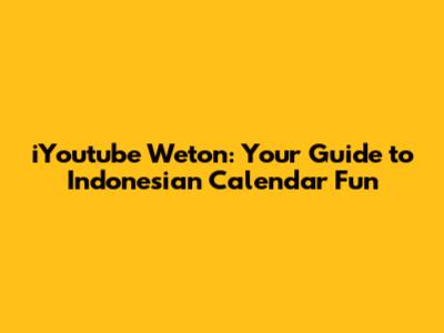 IYoutube Weton: Your Guide To Indonesian Calendar Fun