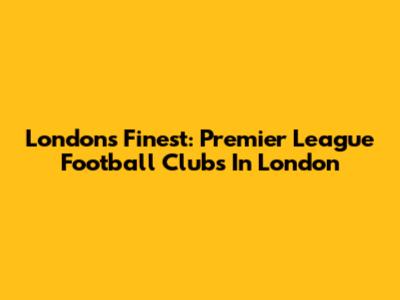 London's Finest: Premier League Football Clubs In London