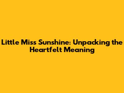 Little Miss Sunshine: Unpacking The Heartfelt Meaning