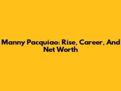 Manny Pacquiao: Rise, Career, And Net Worth