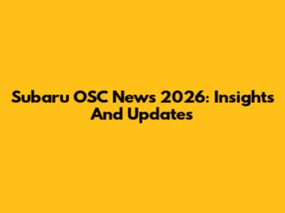 Subaru OSC News 2026: Insights And Updates