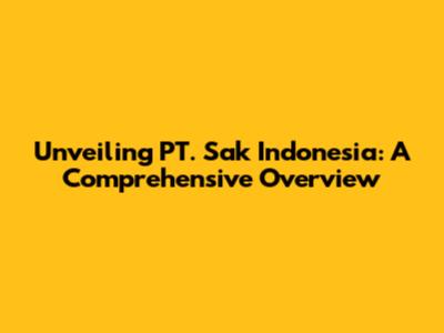 Unveiling PT. Sak Indonesia: A Comprehensive Overview
