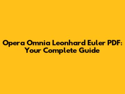 Opera Omnia Leonhard Euler PDF: Your Complete Guide
