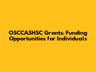 OSCCASHSC Grants: Funding Opportunities For Individuals