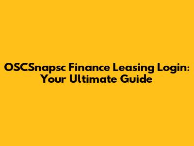 OSCSnapsc Finance Leasing Login: Your Guide