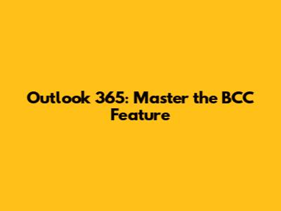 Outlook 365: Master The BCC Feature