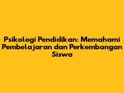 Psikologi Pendidikan: Memahami Pembelajaran Dan Perkembangan Siswa