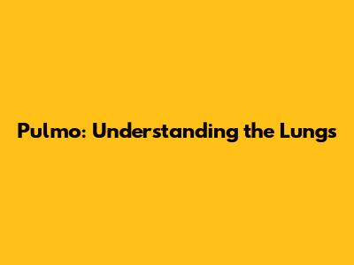 Pulmo: Understanding The Lungs