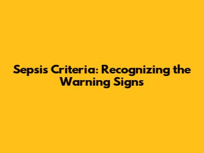 Sepsis Criteria: Recognizing The Warning Signs