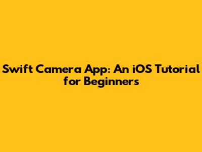 Swift Camera App: An IOS Tutorial For Beginners
