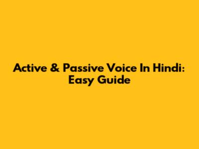 Active & Passive Voice In Hindi: Easy Guide