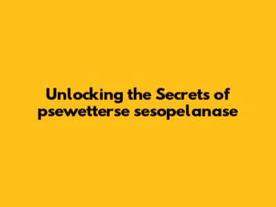 Exploring the Core Components of psewetterse sesopelanase