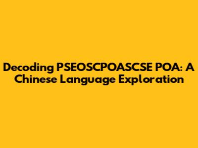 Dissecting the Mystery: What Does PSEOSCPOASCSE POA Stand For?