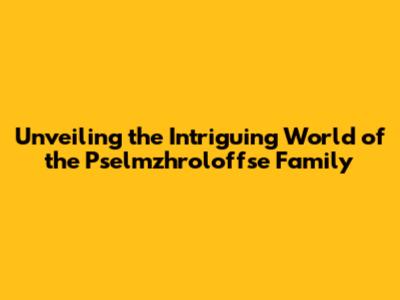 Unveiling The Intriguing World Of The Pselmzhroloffse Family