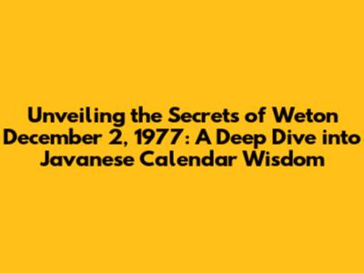Unveiling The Secrets: Weton December 2, 1977 Explained