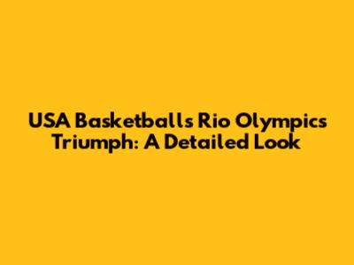 USA Basketball's Rio Olympics Triumph: A Detailed Look