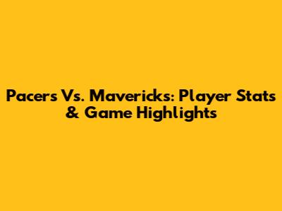 Pacers Vs. Mavericks: Player Stats & Game Highlights
