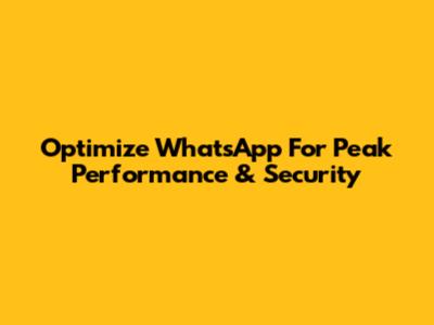 Optimize WhatsApp For Peak Performance & Security